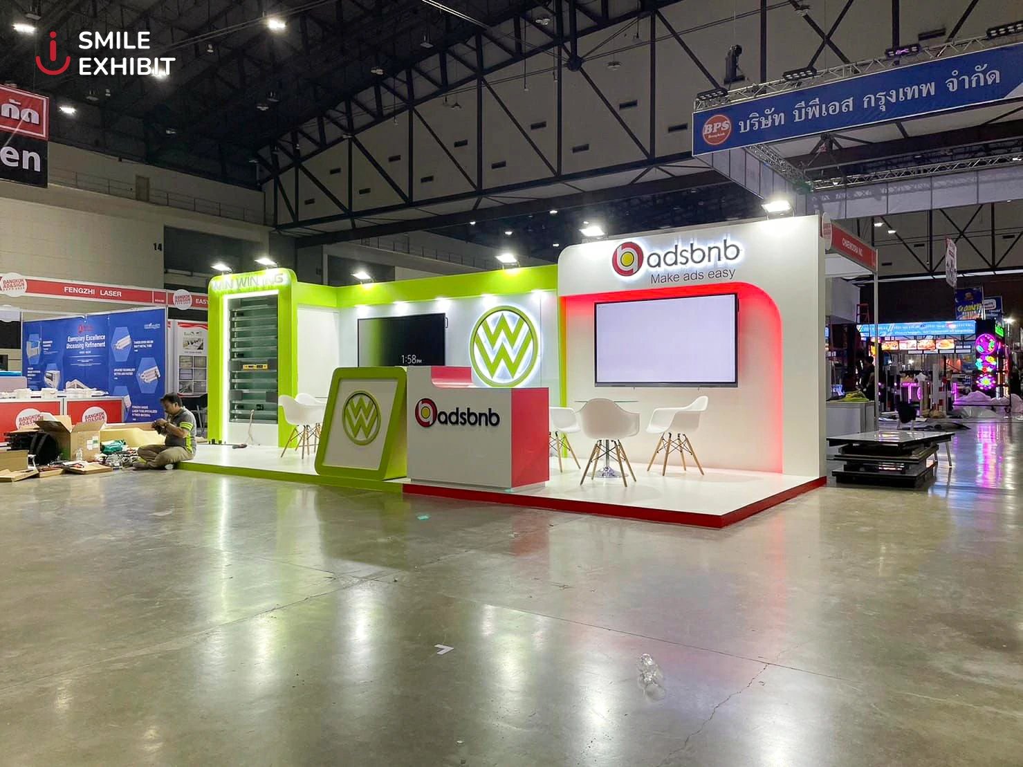 พื้นที่ภายในบูธถูกจัดสรรอย่างลงตัว มีทั้งโซนนั่งเจรจาธุรกิจ หน้าจอแสดงผลขนาดใหญ่ และชั้นโชว์ผลิตภัณฑ์ที่กำลังติดตั้ง โดยมุ่งเน้นการนำเสนอเทคโนโลยีการพิมพ์ดิจิทัลที่ทันสมัย เพื่อรองรับงานพิมพ์ประเภทป้ายโฆษณาในหลากหลายรูปแบบ ตอบโจทย์ธุรกิจโฆษณาในยุคใหม่ได้อย่างครบวงจร