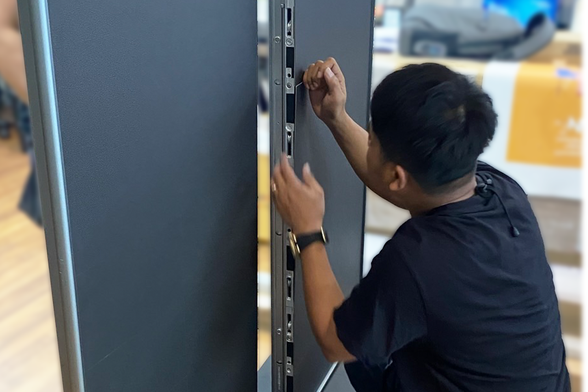 ปัญหาที่หลายคนกังวลที่สุดเมื่อต้องใช้จอแสดงผลขนาดใหญ่คืองานติดตั้งและรื้อถอนที่ซับซ้อน แต่เมื่อใช้บริการกับ SmileExhibit คุณสามารถพักความกังวลนี้ได้เลย เพราะทีมงานผู้เชี่ยวชาญของเราจะดูแลทุกขั้นตอนให้คุณทั้งหมด ตั้งแต่การ ติดตั้ง ที่รวดเร็วและปลอดภัย ไปจนถึงการ ตั้งค่า ที่เหมาะสม และการ รื้อถอน เมื่อจบงาน คุณมีหน้าที่เพียงแค่เตรียมเนื้อหาที่ต้องการมานำเสนอเท่านั้น!
