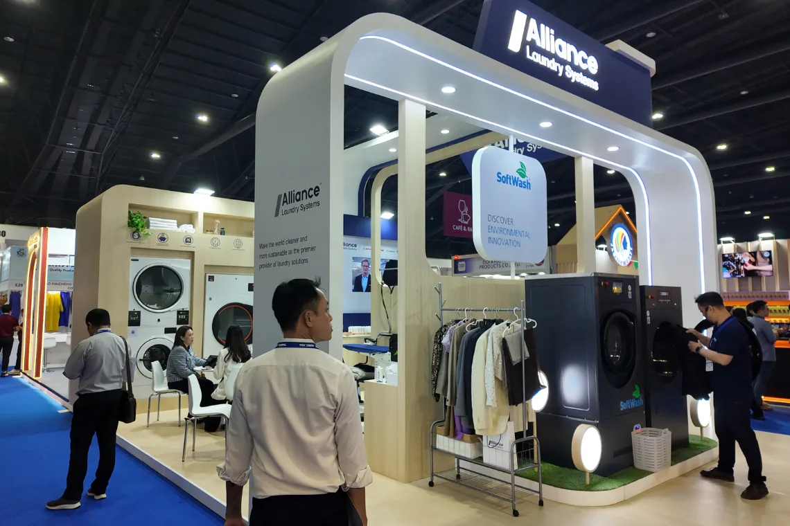 สำหรับสินค้ากลุ่มเทคโนโลยีและอุปกรณ์หนักที่มุ่งตอบโจทย์ Operation ในร้านอาหาร ดีไซน์ช่วยให้ทุกอย่างง่ายขึ้น อย่าง Alliance Laundry Systems ที่นำเสนอภายใต้โครงสร้างที่โปร่งและดูสะอาด (Clean & Professional) เน้นโทนสีขาว-น้ำเงิน สื่อถึงนวัตกรรม SoftWash ที่เป็นมิตรต่อสิ่งแวดล้อม ทำให้เครื่องซักผ้าอุตสาหกรรมดูทันสมัยและน่าใช้งานมากขึ้น