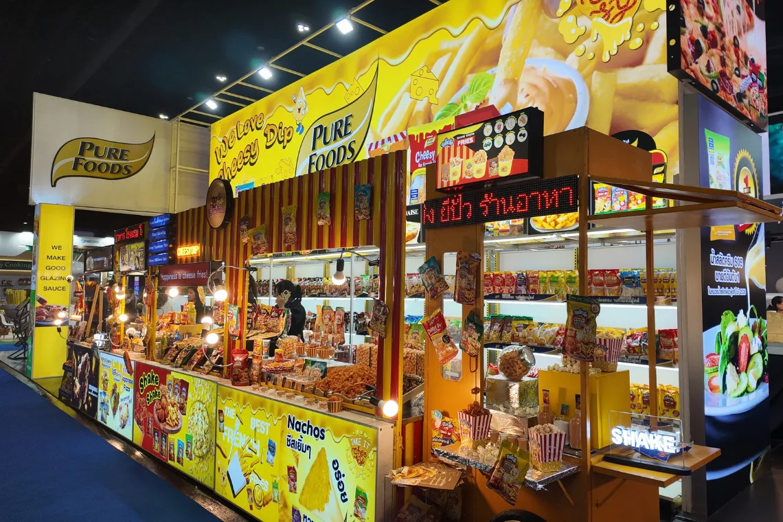 ปิดท้ายด้วยการใช้พลังของ Sensory Marketing อย่างบูธ PURE FOODS ที่ใช้สีเหลืองสดใสโดดเด่นมาแต่ไกล พร้อมกราฟิกขนาดยักษ์ที่สื่อถึงความเยิ้มของ "Cheesy Dip" และความสนุกสนานของการกิน เป็นการใช้สีเพื่อกระตุ้นความรู้สึกหิวและดึงดูดผู้ประกอบการที่มองหาซัพพลายเออร์วัตถุดิบให้เดินเข้ามาหาแบรนด์ได้อย่างยอดเยี่ยม