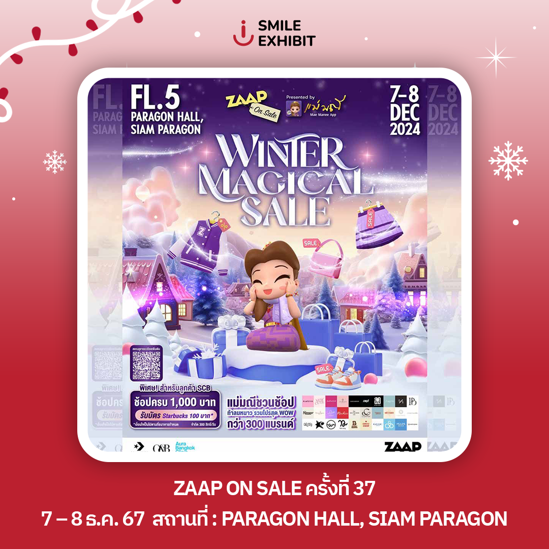 เตรียมหัวใจให้พร้อม! แล้วมาสัมผัสกับความมหัศจรรย์ไปด้วยกันกับงาน ZAAP ON SALE ครั้งที่ 37 Presented by แม่มณี WINTER MAGICAL SALE ขนโปรโมชั่นสุดยิ่งใหญ่ต้อนรับฤดูหนาวส่งท้ายปี 67 รวมสินค้าแบรนด์ดังกว่า 300 แบรนด์!