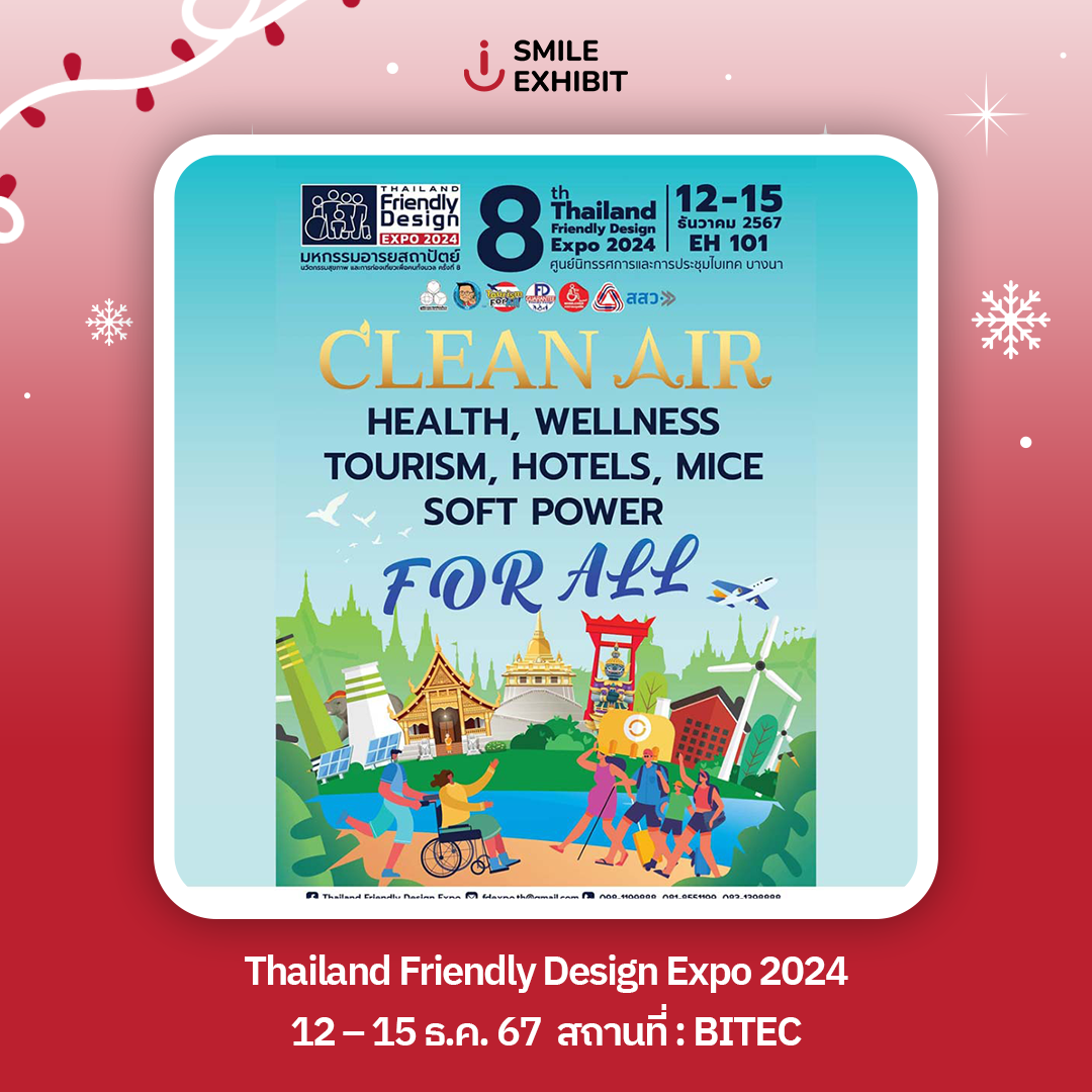 มหกรรมอารยสถาปัตย์ นวัตกรรมสุขภาพ และการท่องเที่ยวเพื่อคนทั้งมวล ครั้งที่ 8 งานมหกรรมที่รวมสินค้า นวัตกรรม เทคโนโลยี การออกแบบ บริการสุขภาพ และการท่องเที่ยว เพื่อทุกคนในครอบครัว! เพลิดเพลินกับกิจกรรมพิเศษมากมาย การแสดงสินค้า กิจกรรมการให้ความรู้ การสัมมนา การประชุม ที่น่าสนใจ