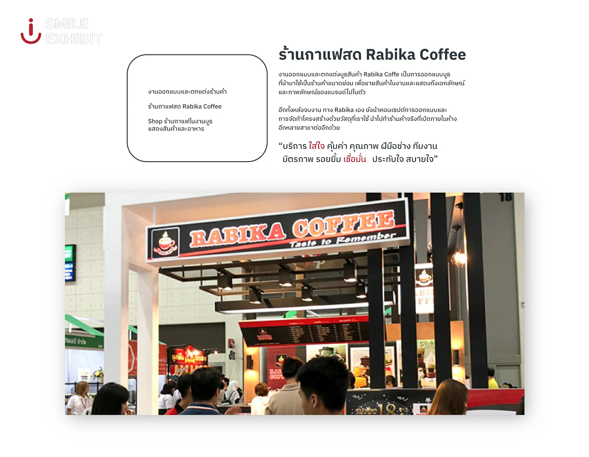 The booth design and decoration for Rabika Coffee was created as a compact retail space used for selling products at the event, while also reflecting the brand's unique identity and image.