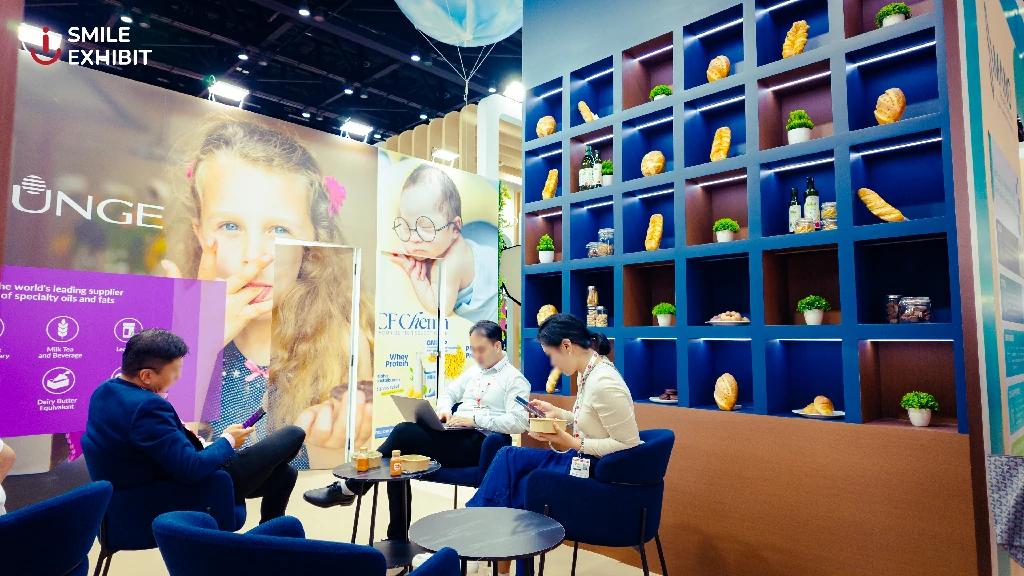 The entire space is designed for smooth flow, allowing visitors to explore all three brands in one booth while clearly experiencing each brands distinctive character. Smile Exhibit carefully crafted every detail to showcase food innovation, sustainability, and contemporary lifestyle all in one complete booth!