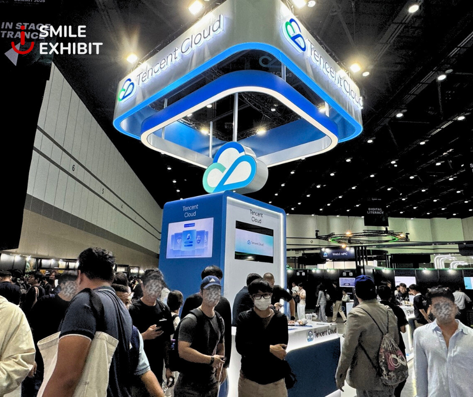 The Tencent Cloud booth at BITKUB SUMMIT 2025 was designed and built by Smile Exhibit, with a concept that reflects the image of a world-class brand through professional and modern exhibition design.
